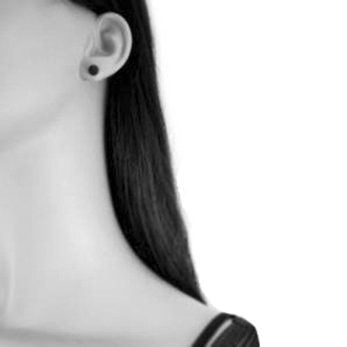 6MM UNISEX Sparkly Pave Glitter/Disco Ball Sterling Silver Stud Earrings/Ear Studs for Women Men Ladies Girls - Round Silver Earrings - BLACK JET