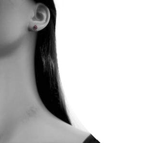6MM Half Disco Ball Sterling Silver Stud Earrings/Ear Studs for Women Ladies Girls - 925 Sterling Silver Round Austrian Crystal Earrings - RED LIGHT SIAM. 6-RLS2